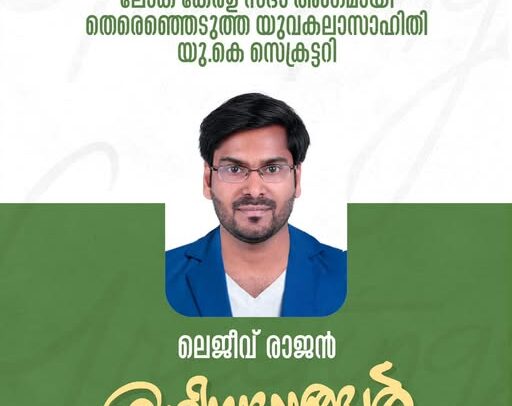 യുവകലാസാഹിതി യുകെയുടെ പുതിയ സെക്രട്ടറിയായി ശ്രീ.ലെജീവ് രാജനേയും പ്രസിഡന്റായി ശ്രീ.അഭിജിത്ത് പ്രദീപ്കുമാറിനെയും ട്രഷററായി ശ്രീ.മനോജ് കുമാറിനെയും തെരഞ്ഞെടുത്തു.
